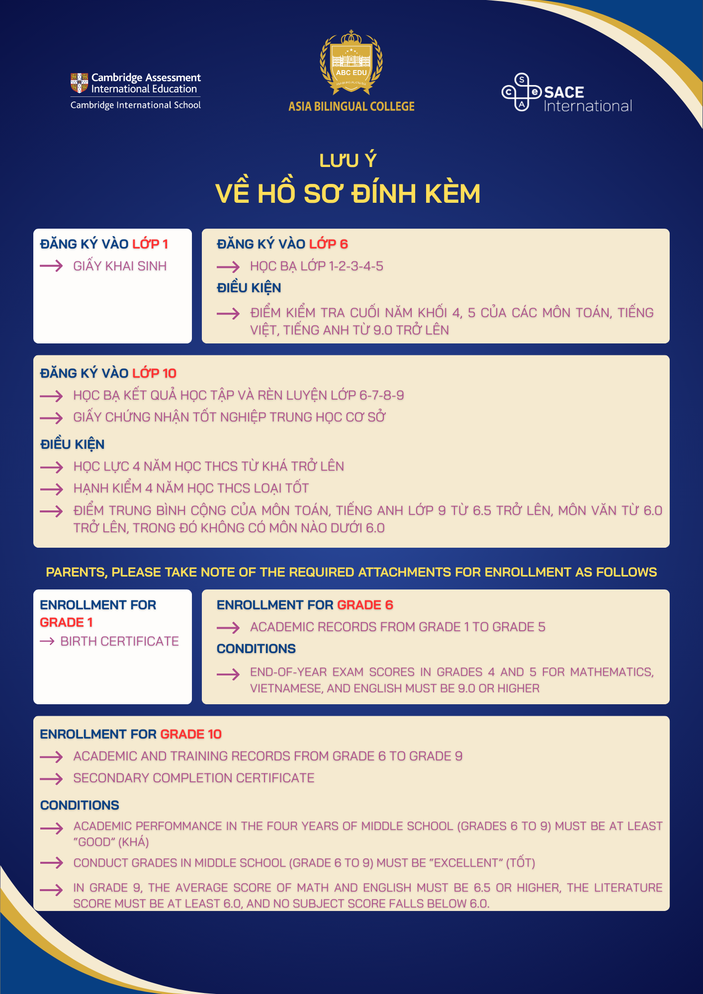 Học sinh đáp ứng các tiêu chí xét tuyển theo quy định của Nhà trường.