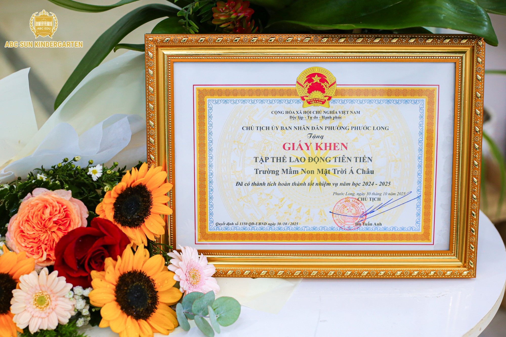 Trường Mầm non Mặt Trời Á Châu vừa vinh dự được Chủ tịch Ủy ban Nhân dân Phường Phước Long, Thành phố Hồ Chí Minh trao tặng Giấy khen "Tập thể Lao động Tiên tiến". Đây là một thành tích đáng tự hào, là sự ghi nhận xứng đáng cho nỗ lực không ngừng nghỉ và tinh thần trách nhiệm cao của toàn bộ đội ngũ cán bộ, giáo viên và nhân viên nhà trường trong suốt năm học vừa qua.