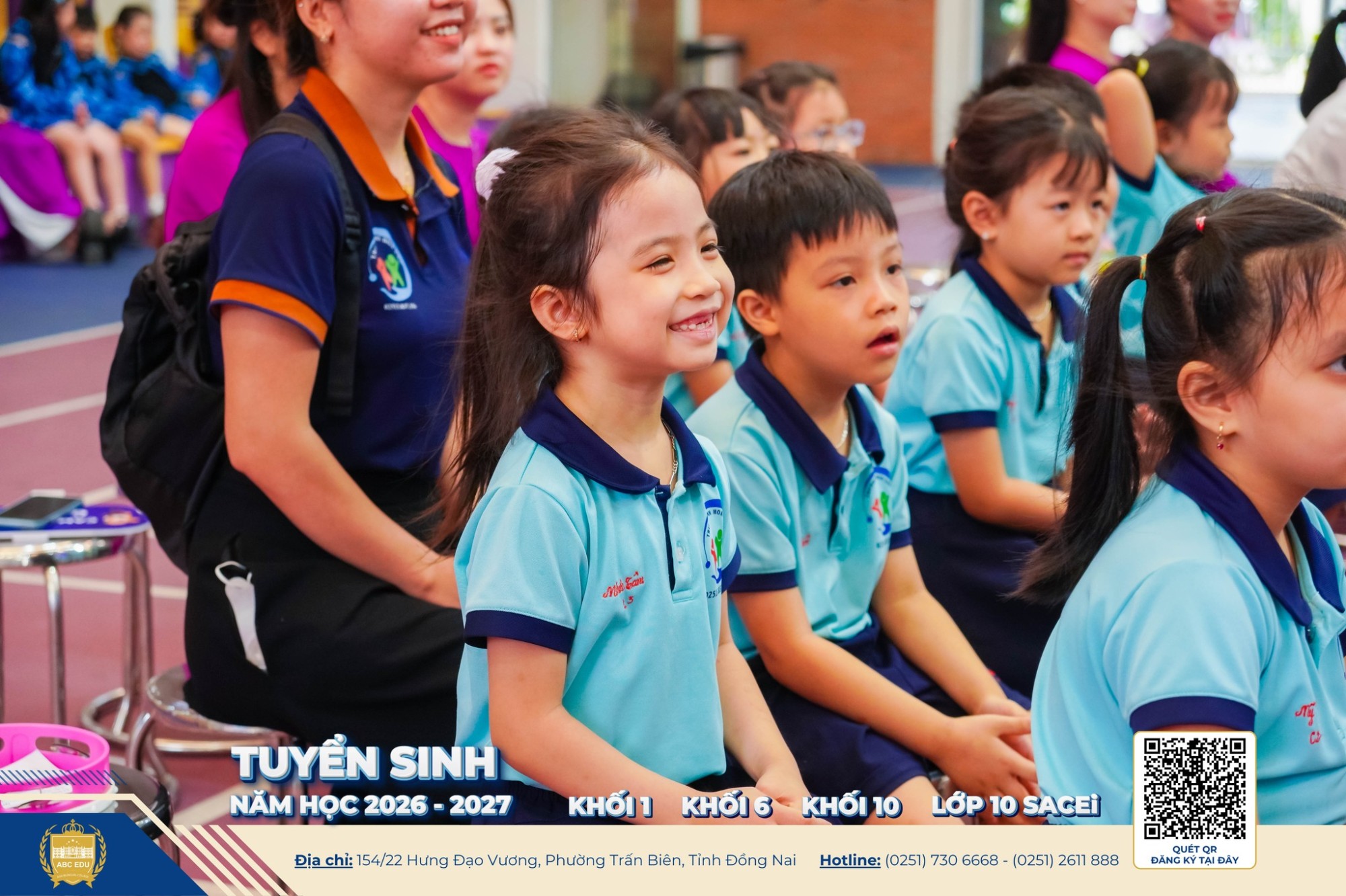 Ngay từ những phút đầu tiên đặt chân đến Trường TH-THCS-THPT Song ngữ Á Châu, các bé đã được chào đón trong không khí sôi động, thân thiện và tràn đầy năng lượng. Chương trình mở đầu với các tiết mục biểu diễn nghệ thuật đặc sắc, tạo nên bầu không khí vui tươi và giúp các em nhanh chóng xóa tan sự bỡ ngỡ ban đầu.