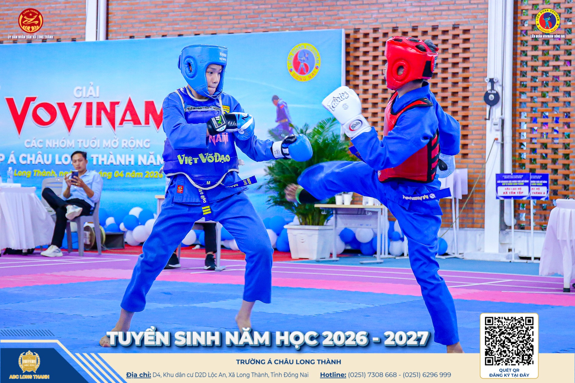 Giải Vovinam các nhóm tuổi mở rộng – Cúp Á Châu Long Thành 2026 đã chính thức diễn ra tại Trường Á Châu Long Thành, thu hút sự tham gia của đông đảo vận động viên thanh thiếu niên đến từ nhiều đơn vị, câu lạc bộ và trường học khác nhau. Sự kiện không chỉ là một giải đấu thể thao đơn thuần mà còn là nơi hội tụ tinh thần võ đạo, ý chí rèn luyện và khát khao chinh phục của thế hệ trẻ.