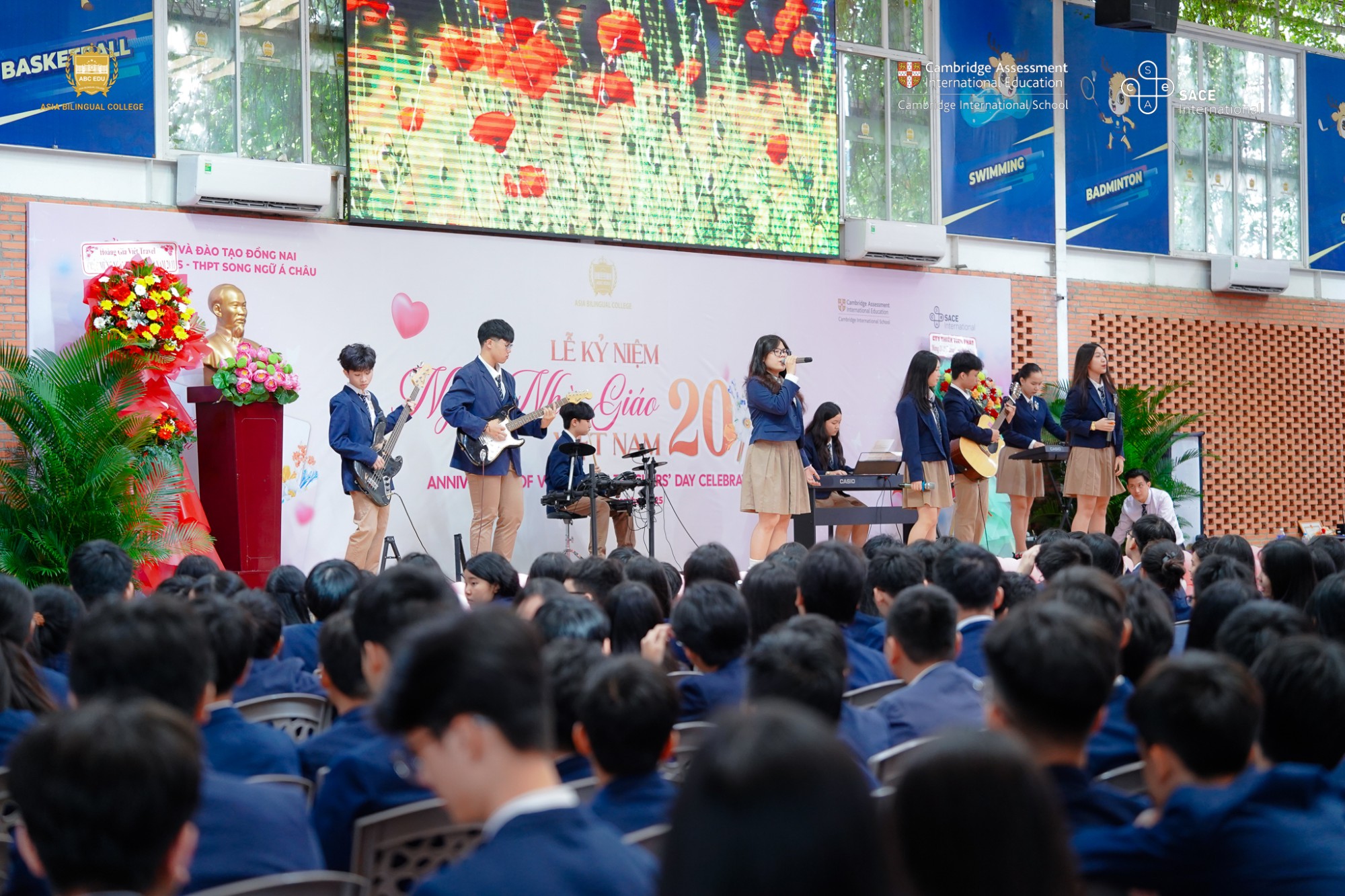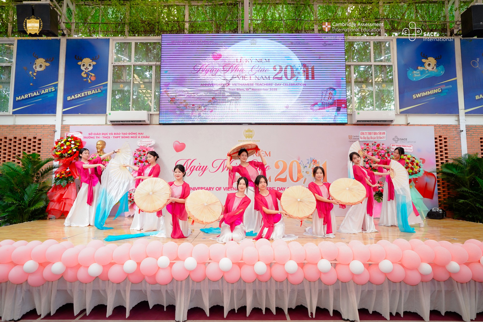 Nhân dịp kỷ niệm 43 năm Ngày Nhà giáo Việt Nam 20/11, Trường TH-THCS-THPT Song ngữ Á Châu đã tổ chức buổi lễ tri ân trang trọng và đầy cảm xúc. Sự kiện không chỉ là dịp để học sinh bày tỏ lòng biết ơn đối với Thầy Cô, mà còn là thời khắc ý nghĩa để toàn thể nhà trường nhìn lại những nỗ lực, thành tựu và dấu ấn đáng tự hào trong suốt một năm qua.