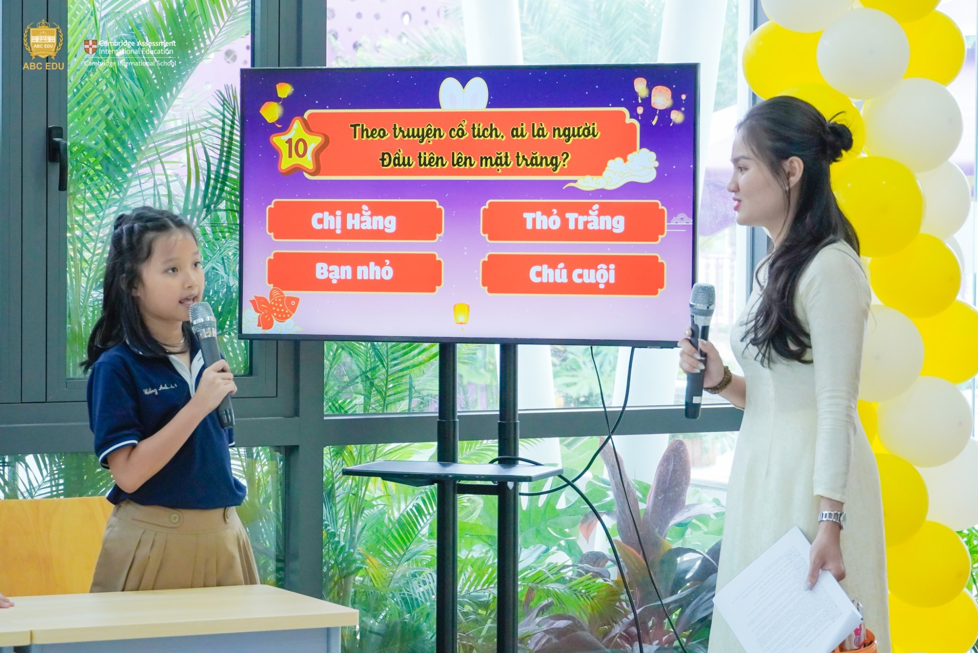 Điểm nhấn của chương trình năm nay là phần kể chuyện “Sự tích Chú Cuội cung trăng” – đưa các em trở về với ký ức tuổi thơ và những giá trị văn hóa truyền thống. Bên cạnh đó, trò chơi đố vui Trung Thu đã đem lại bầu không khí sôi nổi, khuyến khích tinh thần đoàn kết, sáng tạo và sự nhanh nhạy của học sinh.