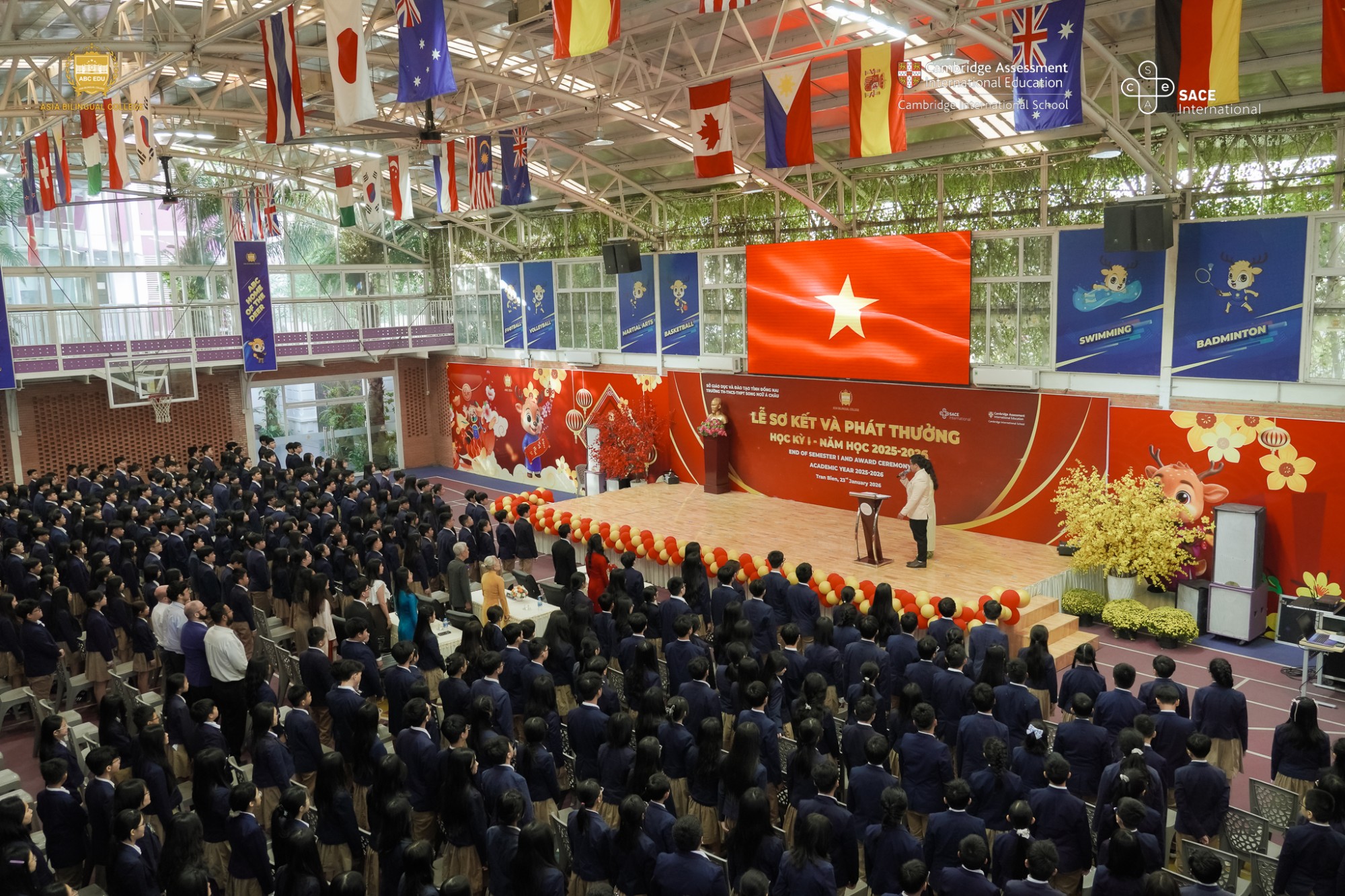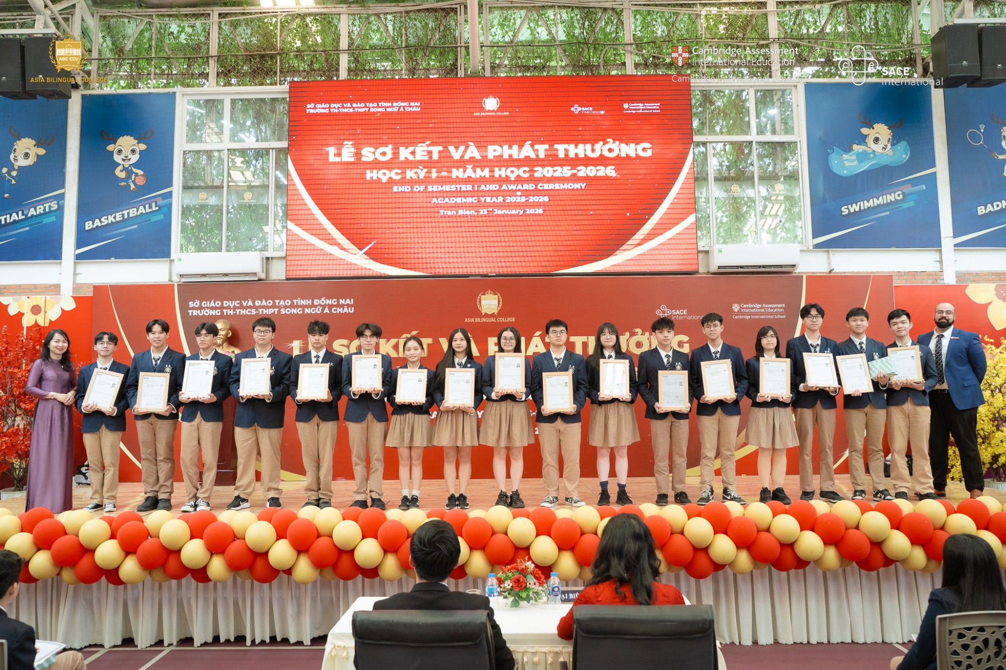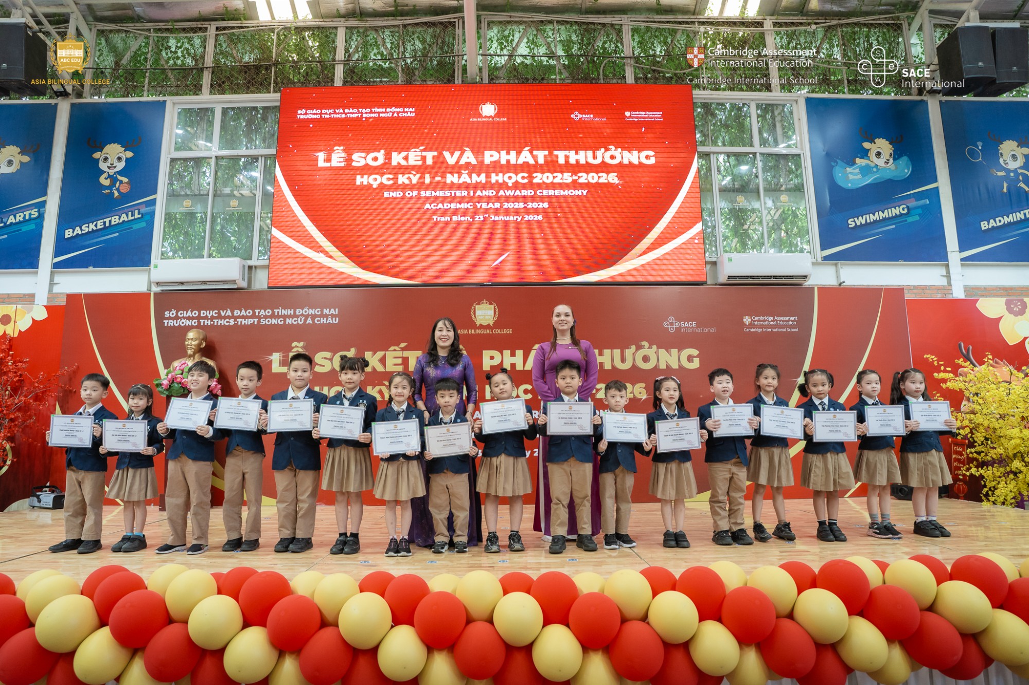 Học kỳ I năm học 2025 – 2026 tại Trường Song ngữ Á Châu đã chính thức khép lại bằng Lễ Sơ kết và Phát thưởng học kỳ I, được tổ chức trong không khí trang trọng, ấm áp và đầy cảm xúc. Buổi lễ không chỉ là dịp tổng kết những kết quả nổi bật trong học tập và rèn luyện của học sinh, mà còn là khoảnh khắc ý nghĩa để thầy cô, học sinh và phụ huynh cùng nhìn lại hành trình nỗ lực suốt nửa đầu năm học.