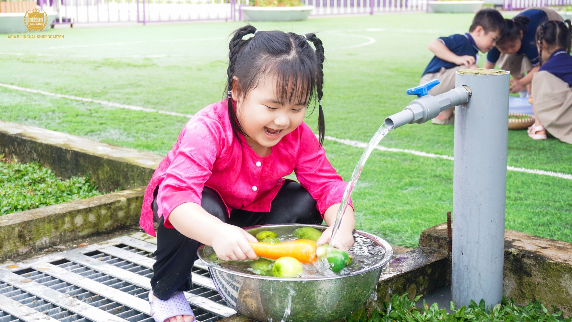 Tại Trường Mầm non Á Châu Long Thành, mỗi hoạt động học tập đều được thiết kế với mục tiêu giúp trẻ phát triển toàn diện cả về nhận thức, kỹ năng và cảm xúc. Trong hoạt động “Thực hành cuộc sống”, các bé đã có cơ hội tự mình trải nghiệm những công việc quen thuộc hằng ngày như nhặt rau, vo gạo, nấu cơm, phơi đồ…
