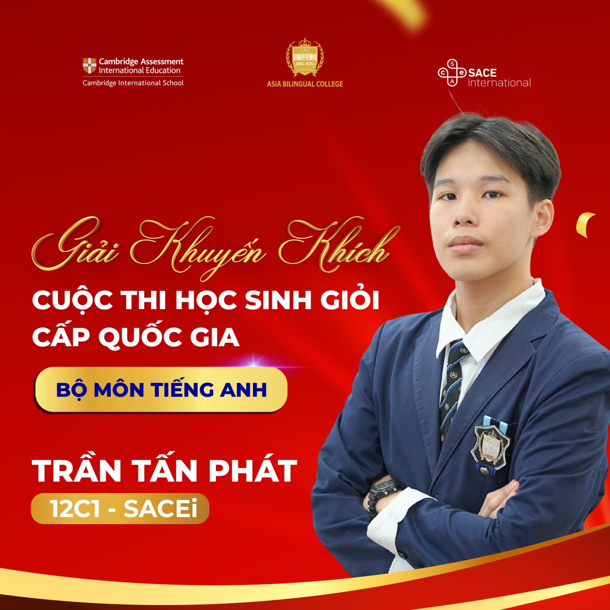 Em Trần Tấn Phát – Lớp SACEi 12C1: Giải Khuyến khích Quốc gia môn Tiếng Anh