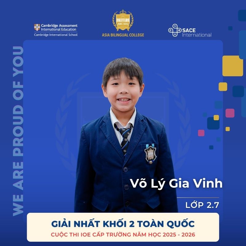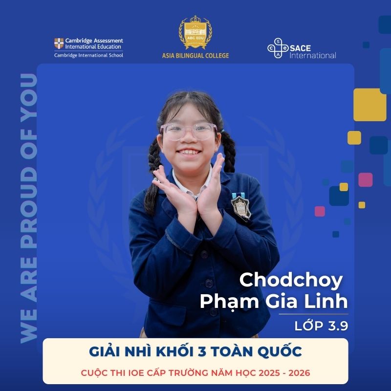 Trường Song ngữ Á Châu trân trọng chúc mừng các ABCers đã đạt thành tích nổi bật trong Cuộc thi IOE cấp trường năm học 2025–2026. Đây là sân chơi học thuật uy tín, giúp học sinh rèn luyện năng lực tiếng Anh toàn diện thông qua các vòng thi trực tuyến, đồng thời phát triển tư duy ngôn ngữ, khả năng phản xạ và sự tự tin khi sử dụng tiếng Anh trong học tập.