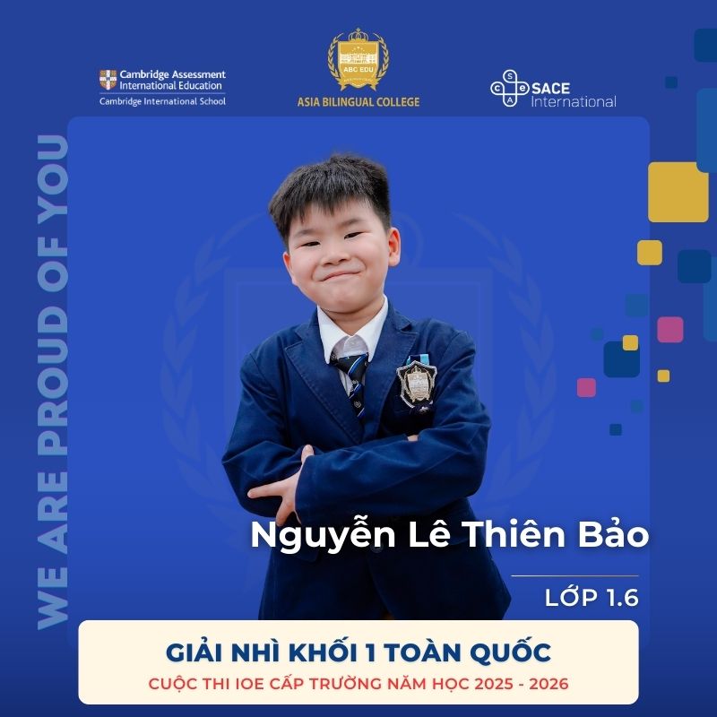 Trường Song ngữ Á Châu tin rằng, những thành tích tại Cuộc thi IOE cấp trường năm học 2025–2026 sẽ là nền tảng quan trọng, tiếp thêm động lực để các ABCers tiếp tục nuôi dưỡng đam mê học tập, tự tin tham gia các sân chơi học thuật ở cấp độ cao hơn trong thời gian tới. Nhà trường sẽ luôn đồng hành, tạo môi trường học tập tích cực, hiện đại và truyền cảm hứng, nhằm giúp học sinh phát triển toàn diện cả về kiến thức, kỹ năng và bản lĩnh hội nhập quốc tế.